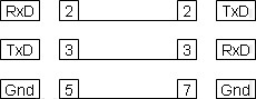 The simplest cable only requires 3 wires. It carries the 2 data lines and the common/signal ground. You'll see that the Transmit (TxD) pin on one port is connected to the Receive (RxD) pin on the other. This cable is fine for situations where no flow control is required or where you intend to use only XOnXOff flow control. With this simplest of cables the Com port properties RTSEnable, DTREnable, CTSHolding etc will, of course, have no effect.