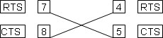 If you do wish to use RTS/CTS flow control or when you need the ability to change or detect changes in the RTS/CTS control lines then you will also need to connect the RTS and CTS pins as shown below.